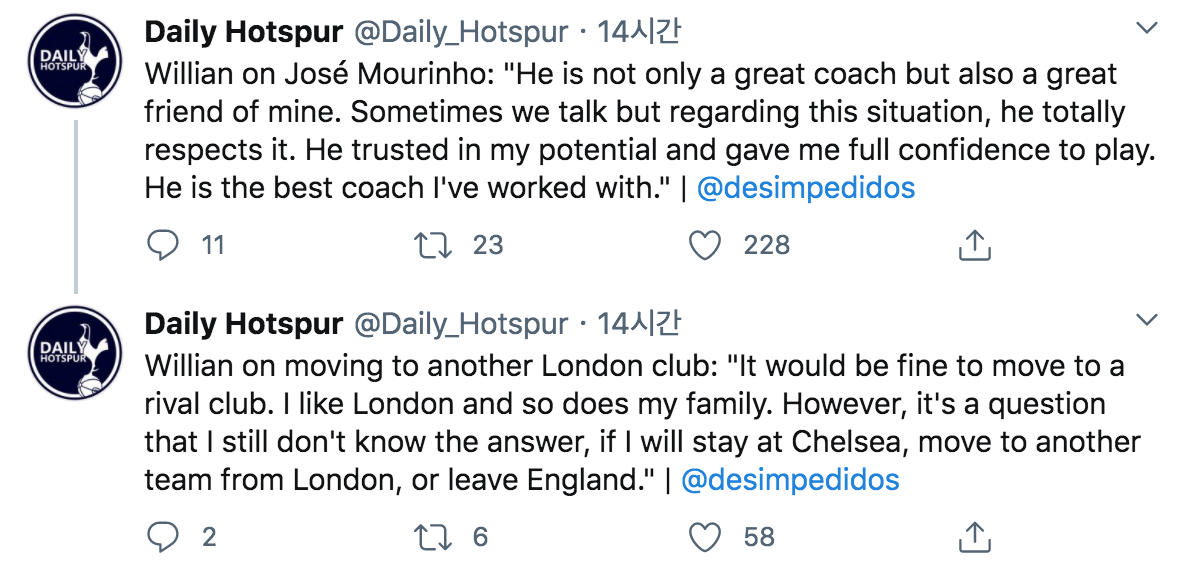 [윌리안 "라이벌 팀으로의 이적도 괜찮죠~"]