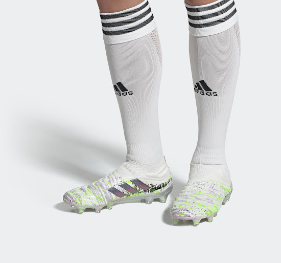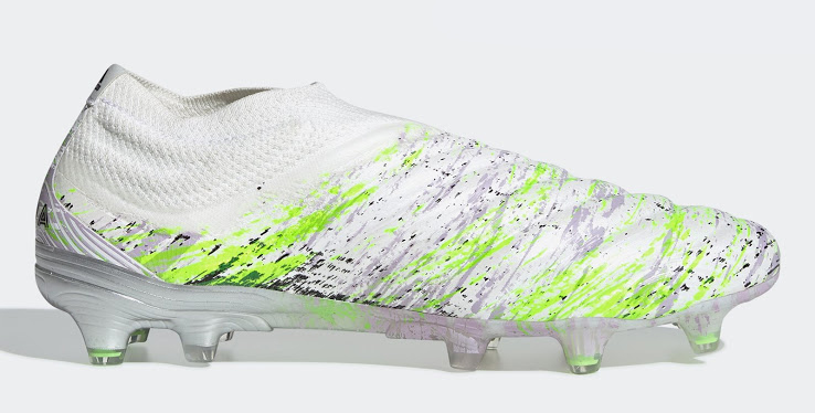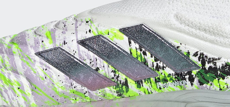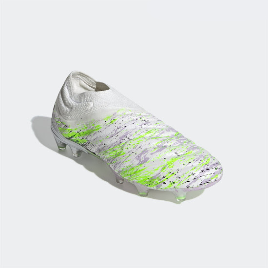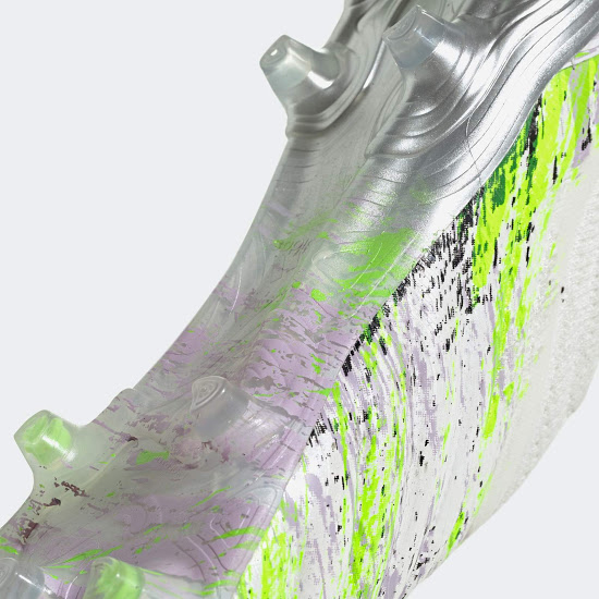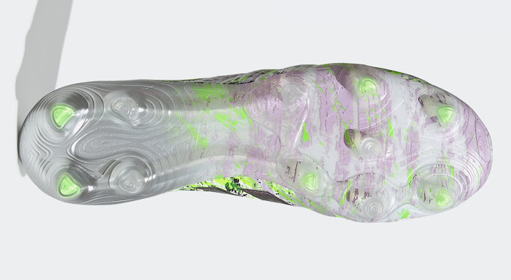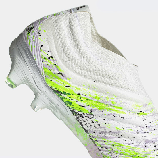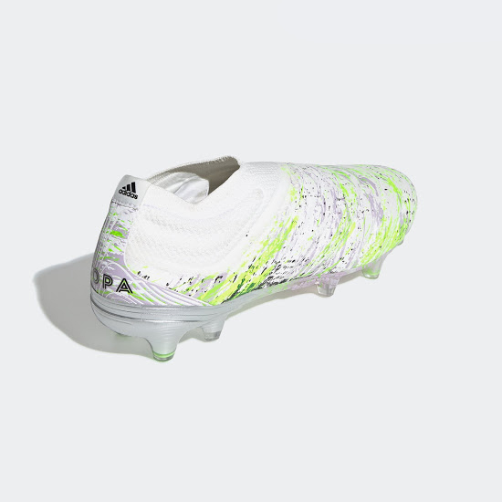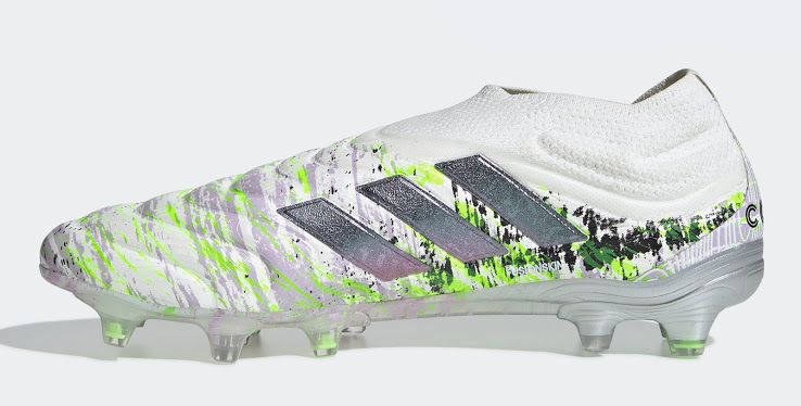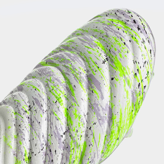 유출된 코파 20+의 모습입니다. WHITE 컬러 어퍼에 SIGNAL GREEN / CORE BLACK 컬러가 마치 물감을 뿌려 놓은 듯 거칠게 새겨져 있습니다.