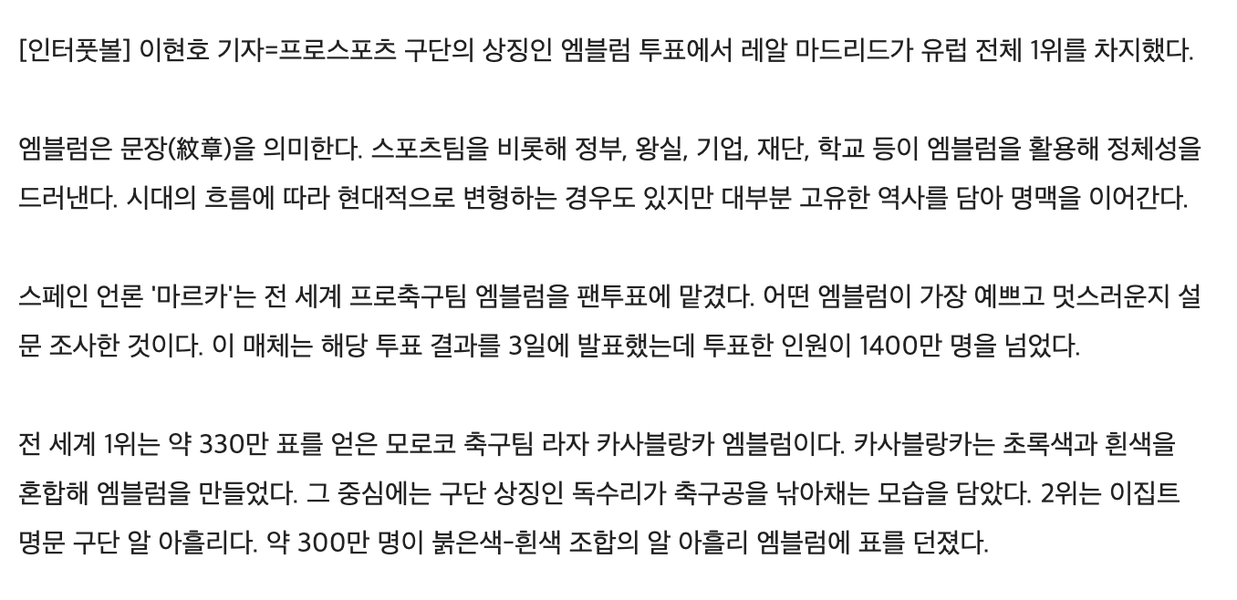 [전 세계에서 '가장 예쁜 축구팀 엠블럼' 투표 결과.. 레알 4위]