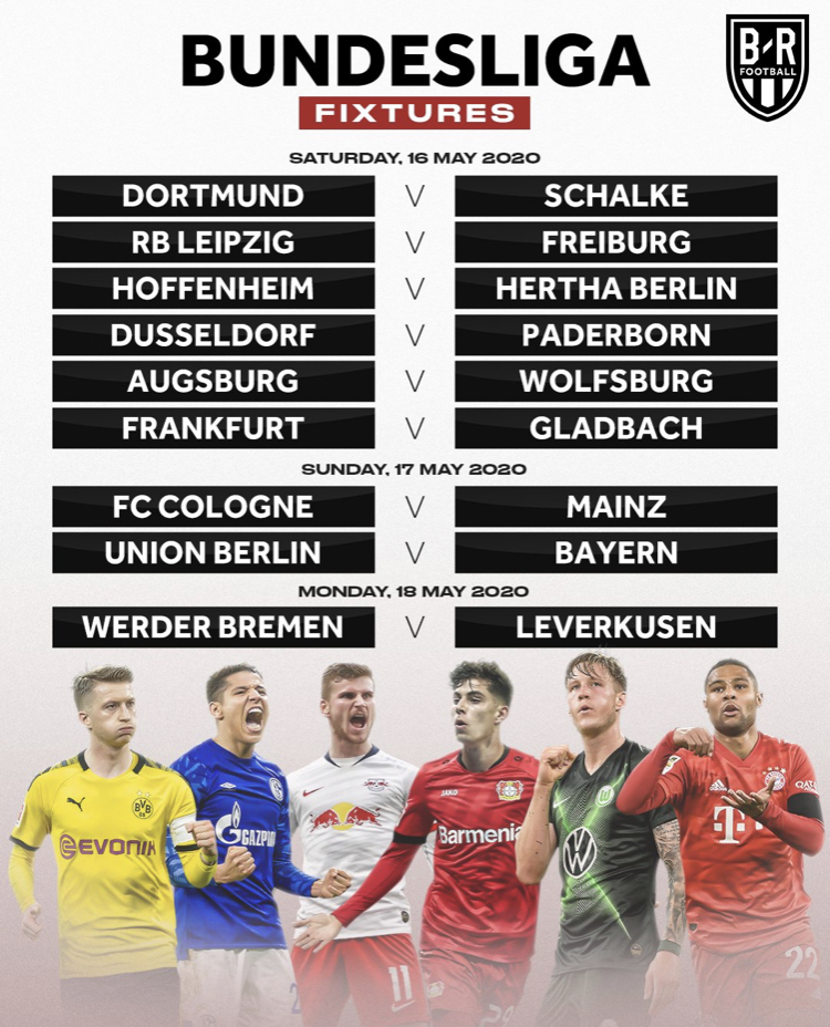 분데스리가는 5월 16일 재개하여 6월 28일 종료합니다.
