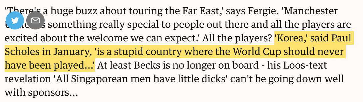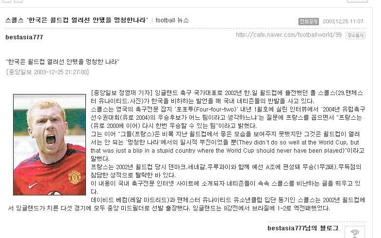 [스콜스 "한국은 월드컵이 열려선 안됐을 멍청한 나라"]