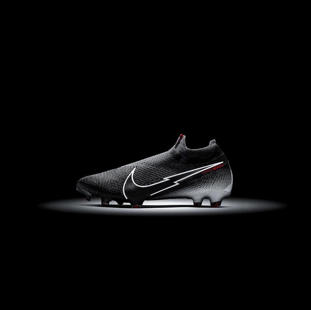 나이키의 두 축구화, 머큐리얼과 팬텀 비전 2를 섞어 놓은 '가상의 축구화'인데요. 머큐리얼의 니트어퍼에 팬텀 비전의 니트 발목 칼라를 입혔습니다. 거기에 2000년대 감성의 검은색/흰색/빨간색 조합이 사용되었습니다.