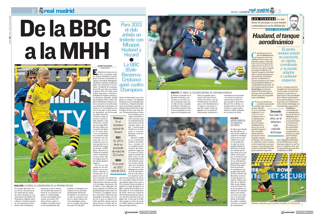 2021년 공격 삼각편대로 아자르, 홀란, 음바페 열망