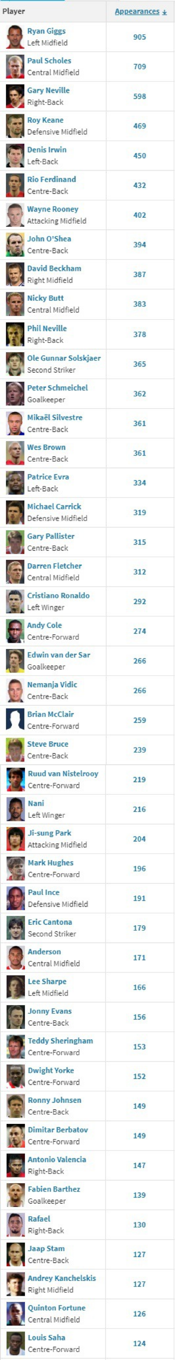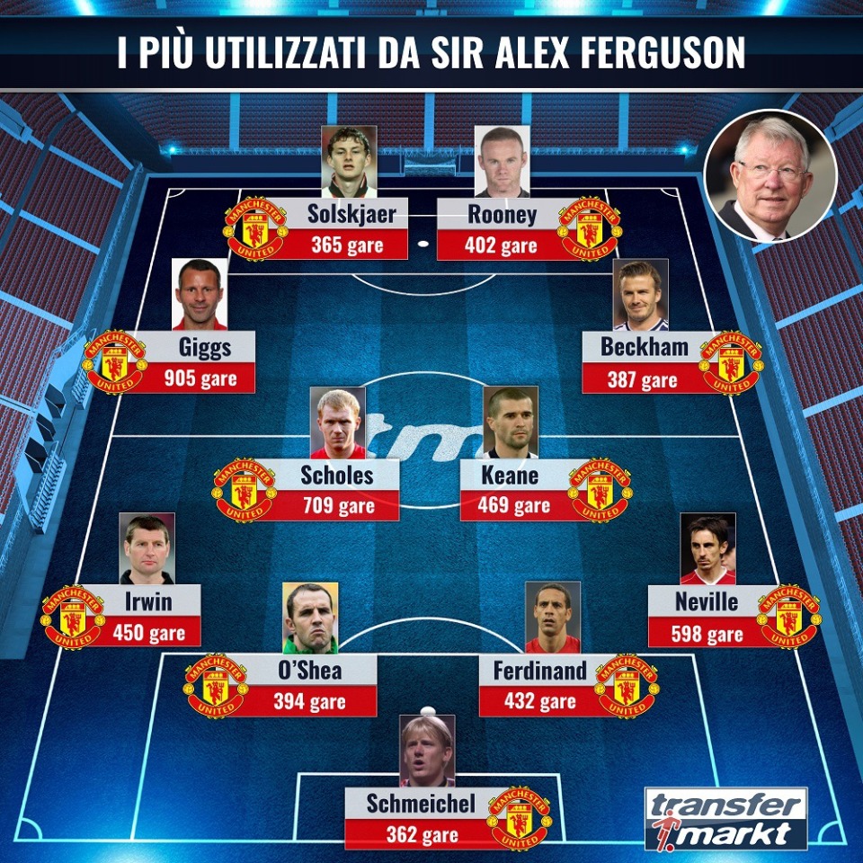 퍼거슨이 가장 많이 기용한 선수들 '베스트 11'