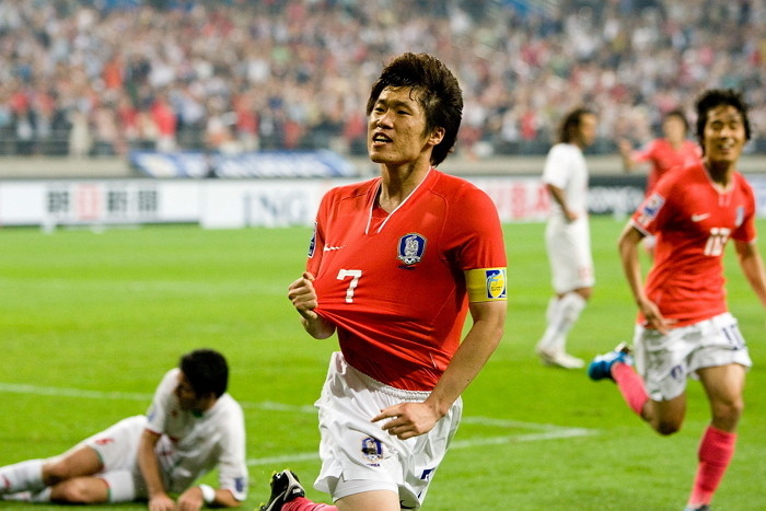 익숙하고 잘 어울리는 빨간색 유니폼과 박지성. 국대, 맨유, PSV에서 빨간색을 입어서인지 유독 잘 어울림