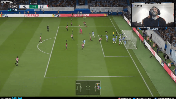 아구에로는 1:0 으로 경기를 리드 하였고 10명의 필드 플레이어로 패널티 박스를 꽉꽉 채우며 실점을 막으려고 한 반면 그의 골키퍼는 볼을 온 몸으로 막으려 골문을 비우고 탈주하는 모습을 보였습니다.