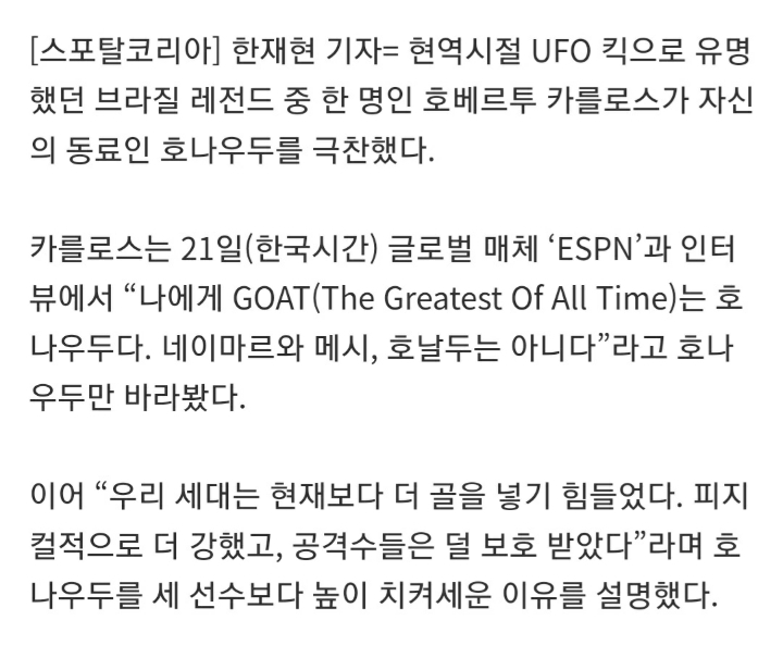 카를로스 "호나우두가 메시, 날두, 네이마르보다 나은 이유는.."