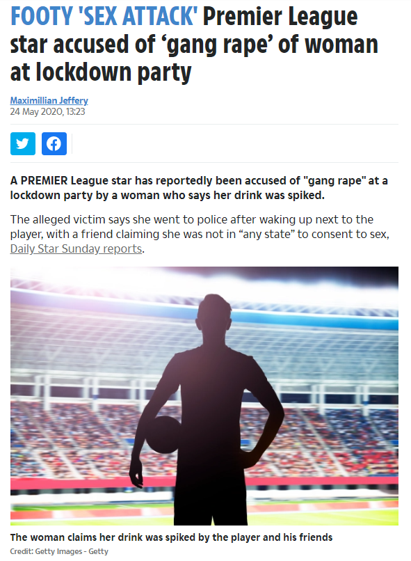 기사(더선): https://www.thesun.co.uk/news/11697779/premier-league-star-accused-gang-rape-woman-lockdown-party/