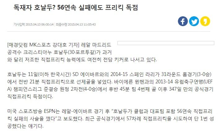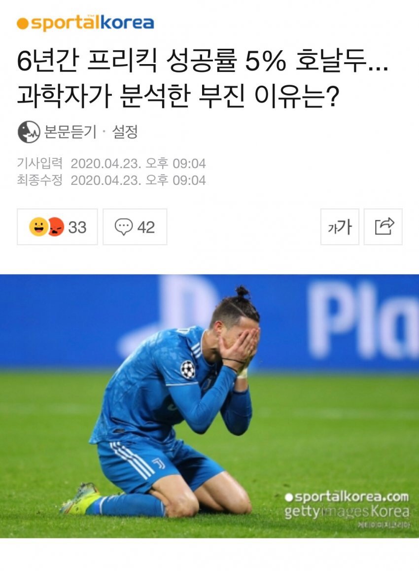 호날두의 참혹한 프리킥 성공률