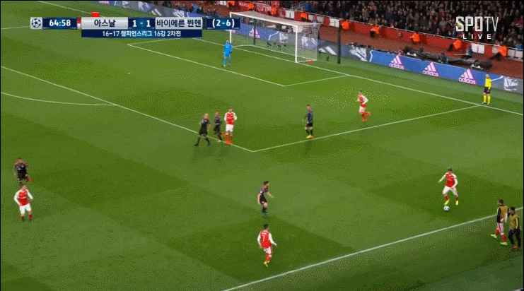 뮌헨 선수들 사이에서 빠져나오는 산체스.gif