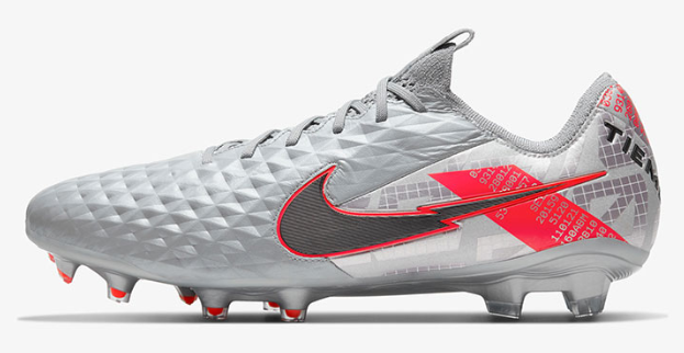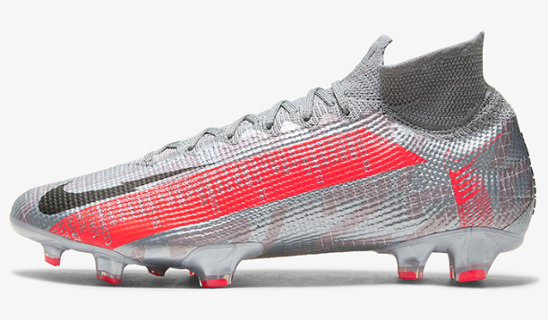 축구화는 ‘Metallic Bomber Grey/Red/Black’ 컬러의 조합으로 제작된 것이 특징입니다. Metallic Bomber Grey 컬러로 인해 축구화가 마치 금속으로 만들어진 것 같은 느낌도 있네요. 그리고 축구화에 번개 스우시가 적용됐습니다.