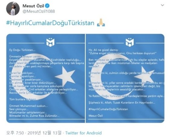 재정적인 문제 외에도 정치적인 문제가 발목을 잡았다는 의견도 있습니다. 2019년 외질은 SNS를 통해 위구르족을 탄압하는 중국 정부와 여기에 침묵하는 다른 무슬림을 비난하는 글을 올린 적이 있죠.