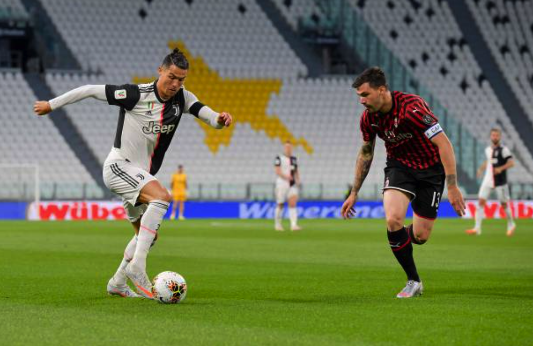 오늘 새벽, 코파 이탈리아 준결승 AC밀란과의 경기에 출전한 크리스티아누 호날두.