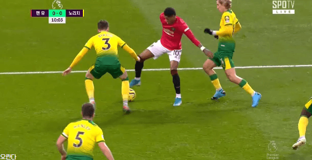 2:1 상황에서 주로 플립플랩으로 두 명 사이를 파고드는데 래시포드는 바깥쪽으로 플립플랩을 씀ㄷㄷ