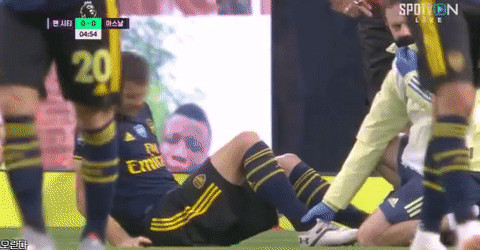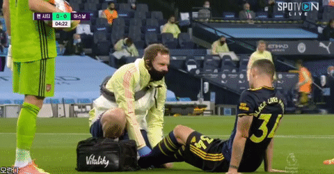 [맨시티vs아스날, 경기시작 5분만에 쟈카 부상..ㄷㄷ.gif]