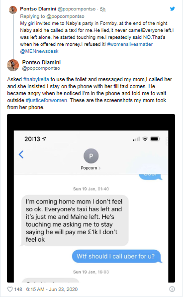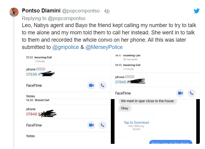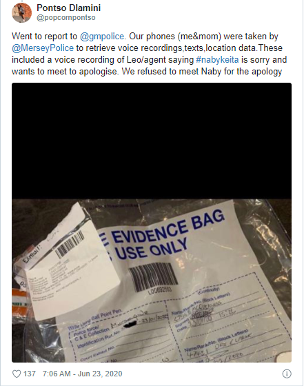 2020년 1월 18일 리버풀의 케이타에게 성폭행 당했다. 모든 증거 녹음/전화를 경찰에 신고하며 제출했고 케이타 측이 사과를 하겠다고 만나자했지만 허위 신고로 대응하겠다는 말을 들었다. ㅈ같은 시스템.