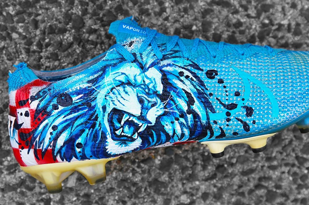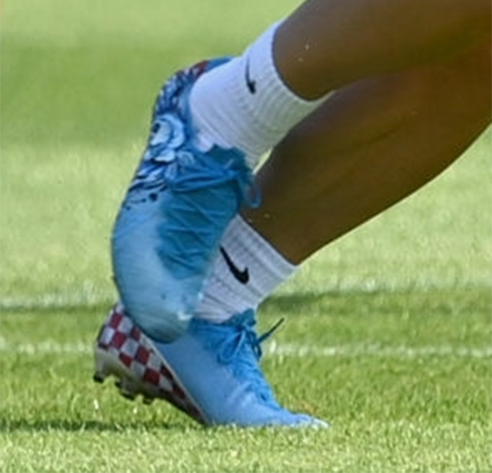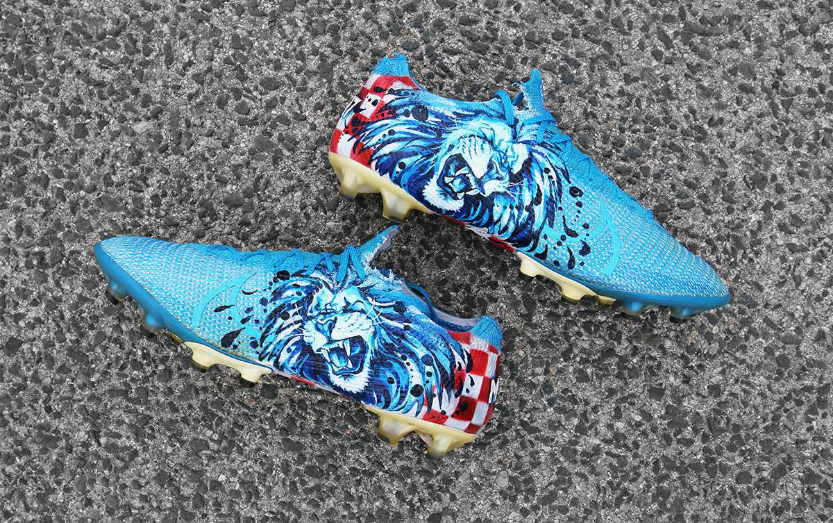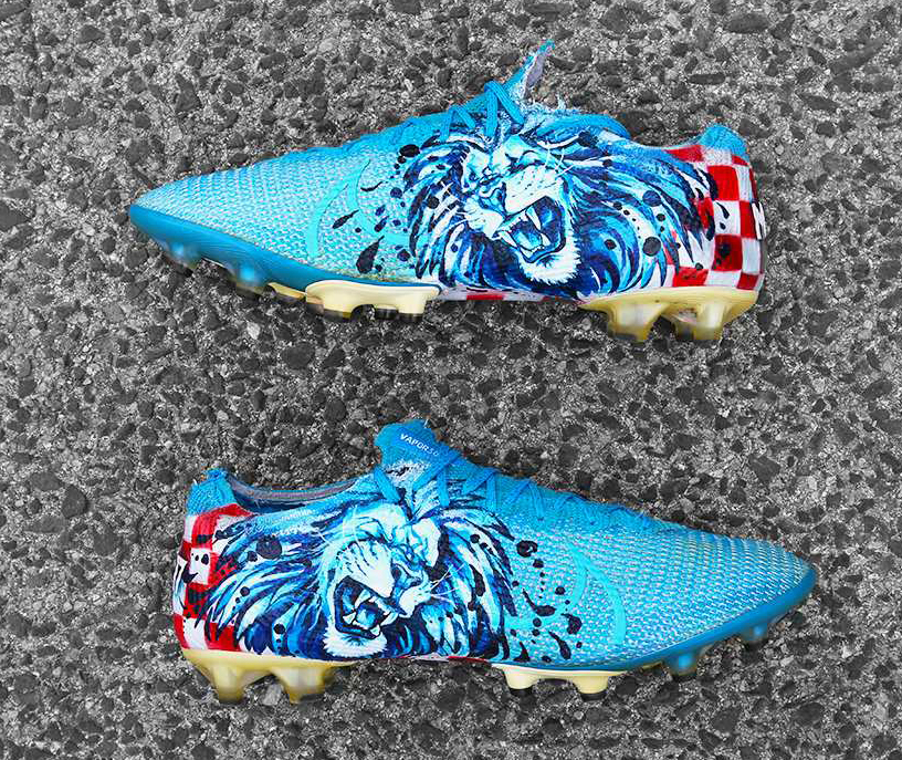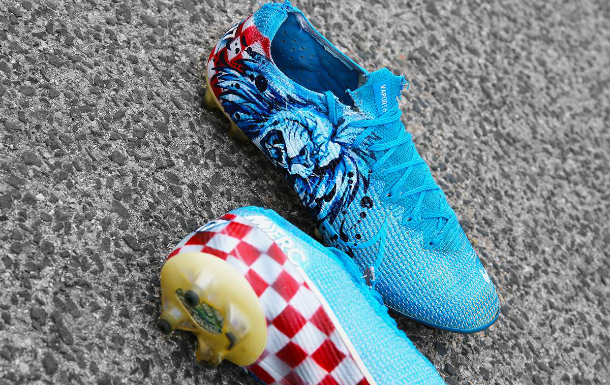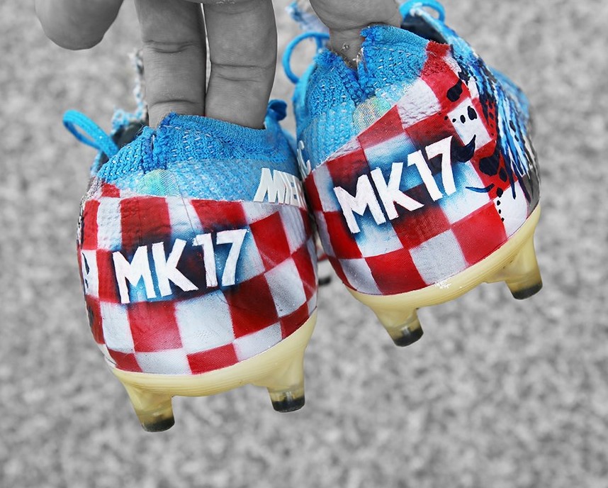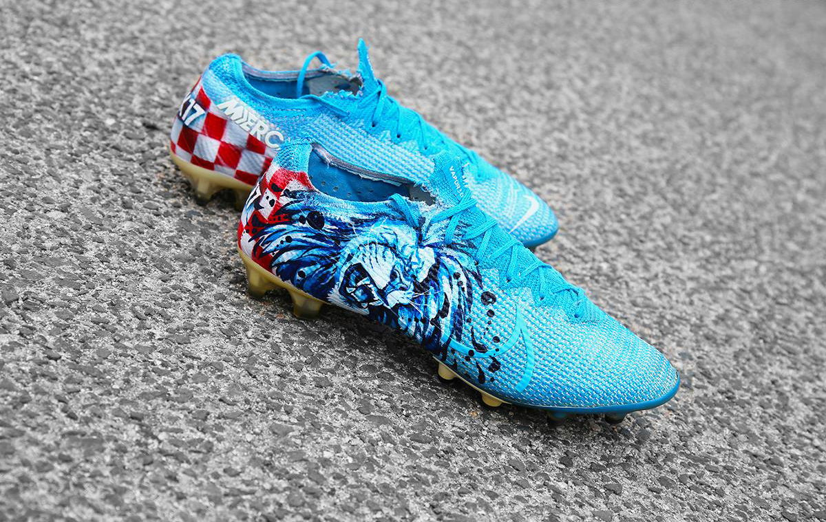 코바시치가 신은 푸른색 축구화는 '나이키의 머큐리얼 베이퍼 13'으로, 코바시치 선수를 위해 커스텀 제작한 축구화로 보입니다.