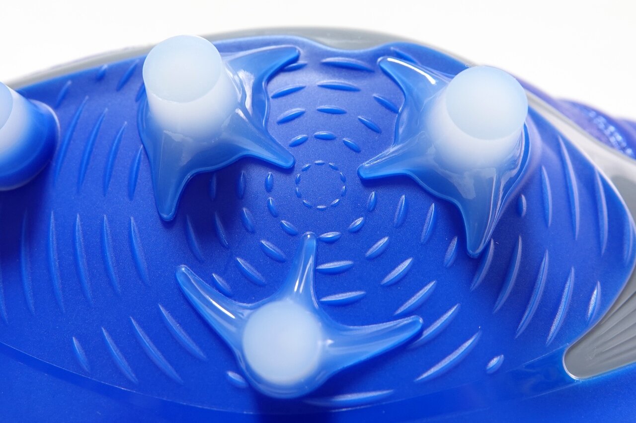 아웃솔 중앙부에서 발을 지지해주는 D-Flex Groove, 내구성을 강화한 스터드 내부의 심, 엄지발가락 부분 ‘로테이션 스터드 설계’ 등이 특징입니다.