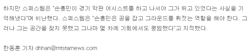 (아니.. 답답하고만 손흥민을 제대로 활용할 줄 모르는 거 같은데 무슨..)