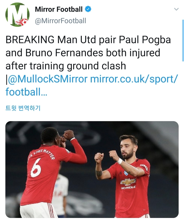 [미러] 훈련중 충돌로 부상당한 포그바와 브루노