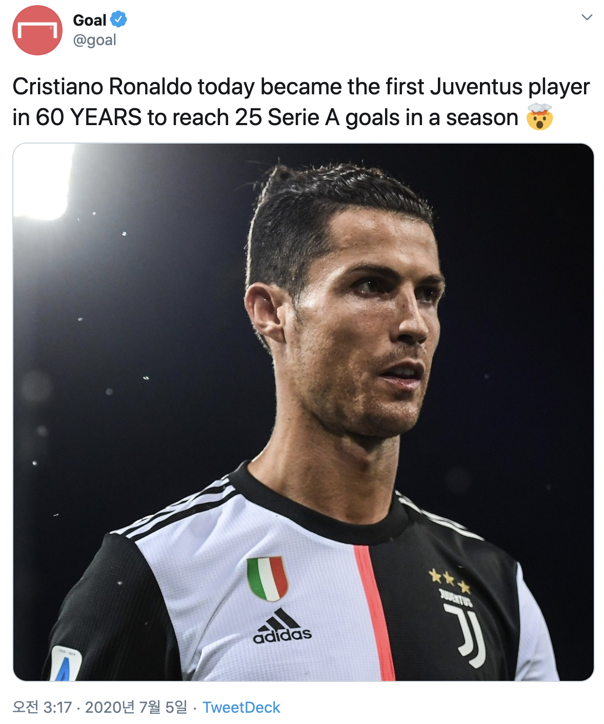 60년 만에 세리에 A에서 25골 달성한 유벤투스 선수가 됨 (그동안 없었다니.. 의외네요)