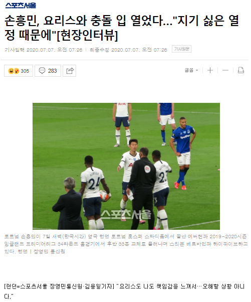 경기 직후 인터뷰에서... “요리스도 팀의 주장으로 그렇고 나도 책임감을 느끼고 있다. 지기 싫었던 상황이다. 언쟁이 있었던 건 사실인데 금방 풀었다” “밖에서도 친한 사이다. 열정이 있기에 발생한 것”