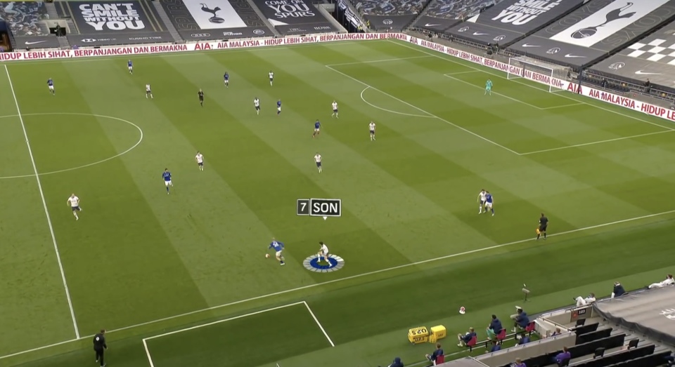3. 손흥민이 다시 수비하러 돌아와야 했다?? -> 아님. 케인이 이미 손흥민의 왼쪽 자리를 선점했고 손흥민이랑 스위칭된 시점부터 커버는 케인 몫임.