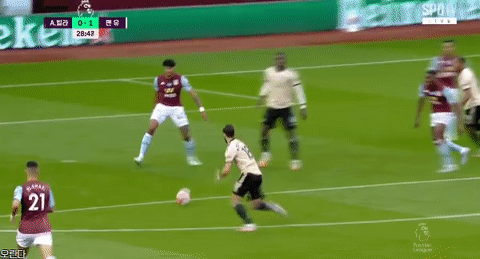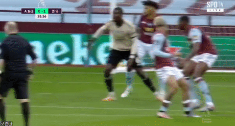 오늘 아스톤빌라vs맨유, 맨유가 pk를 얻어내는 장면
