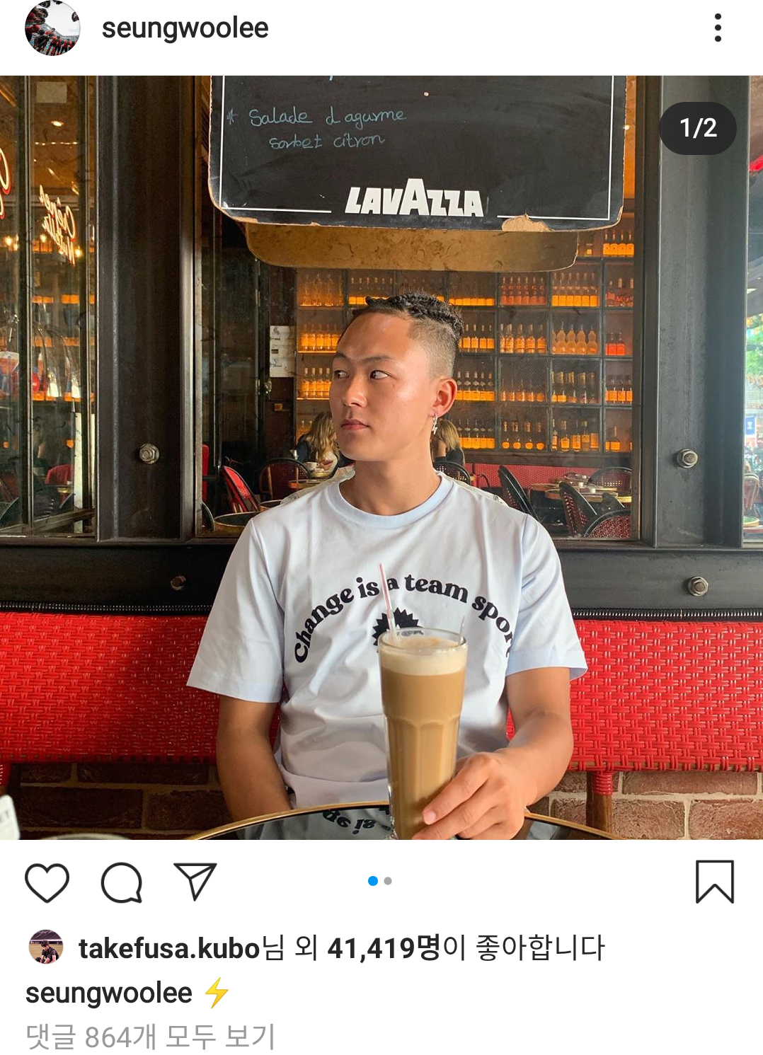 쿠보는 이승우의 인스타 게시물에 좋아요를 누름