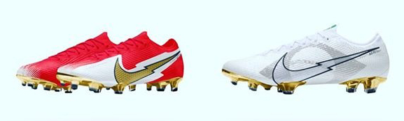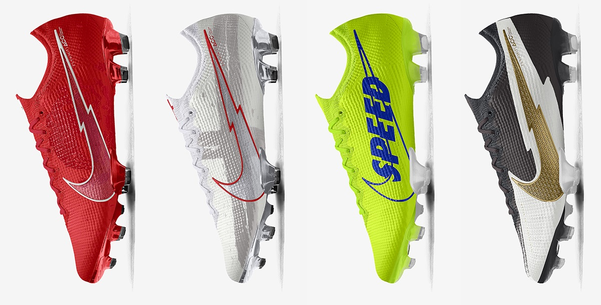 새롭게 업데이트되는 '머큐리얼 베이퍼 13'의 디자인은 위 사진과 같이 총 4가지로 번개 모양의 스우시와 다양한 색상, 어퍼에 그래픽 디자인이 추가된 모습입니다.