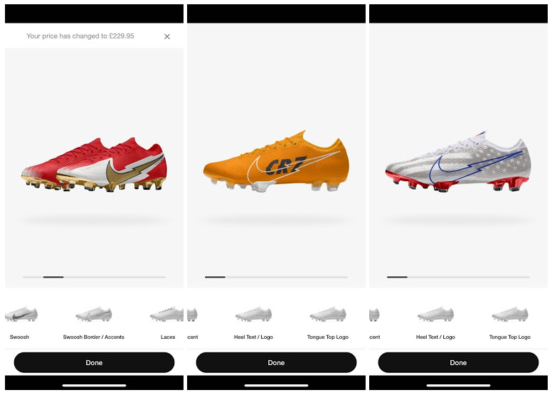 사용자가 선택할 수 있는 옵션으로는 축구화 어퍼의 그래픽 디자인, 색상, 그리고 축구화에 새겨질 문구가 있고, 그 외의 다른 요소들에 대해선 아직 정확한 정보가 없습니다.