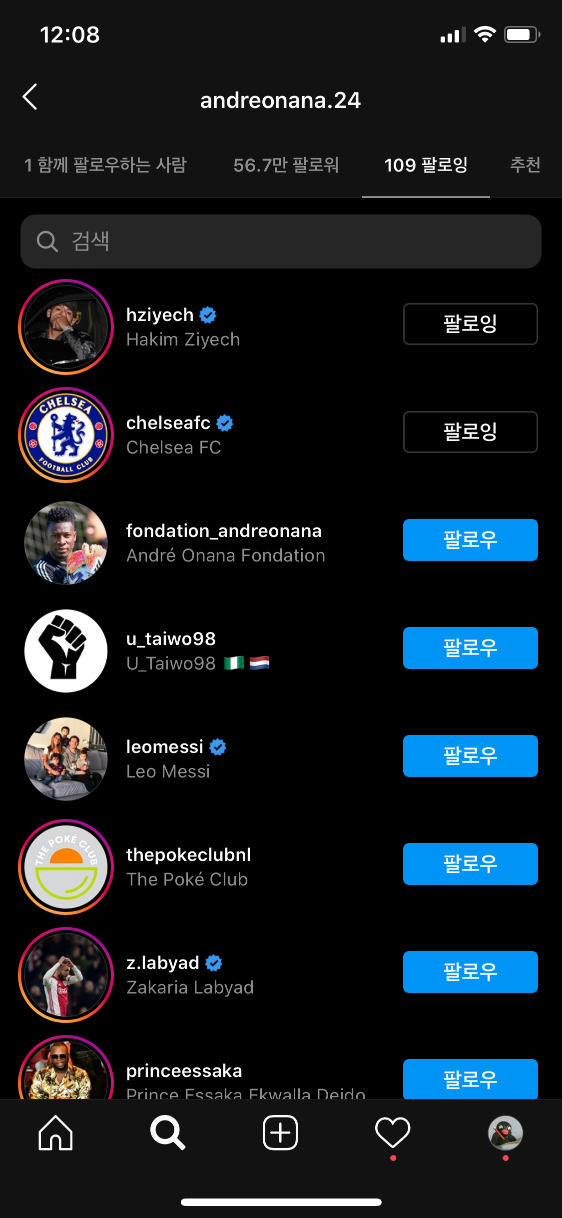 첼시 인스타 팔로우 시작한 아약스의 골키퍼 안드레 오나나ㄷㄷㄷㄷ