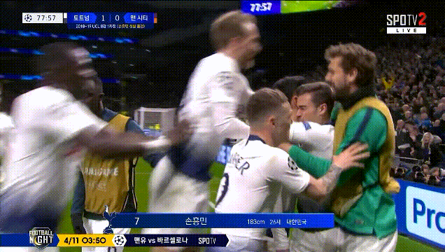 맨시티를 챔스 8강에서 탈락시키는 손흥민.gif