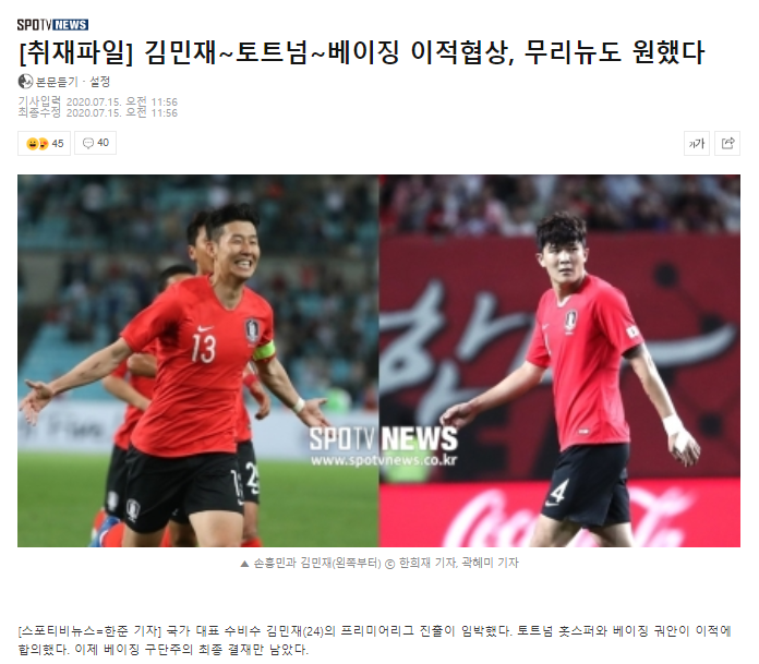 이적 시장 관계자는 "무리뉴 감독이 직접 김민재에게 전화해 설득했다는 이야기도 들린다"고 했다. 이에 대해 영국 현지 소식통은 "그 부분까지는 확인하기 어렵지만 토트넘의 최고위층에서 직접 김민재에게 연락을 취한 것으로 알고 있다"고 했다.