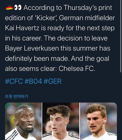 [[키커]올여름 하베르츠는 떠나는 걸로 결정, 목적지도 명확]