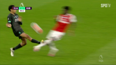 [현재 굉장히 논란중인 아놀드의 발바닥으로 들어가는 태클.gif]