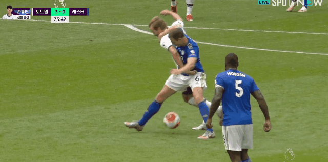 볼 경합하다 죽빵맞는 해리 케인(노카드.....)