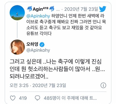 [축구에 대한 순수한 애정을 말한 오하영.twit]