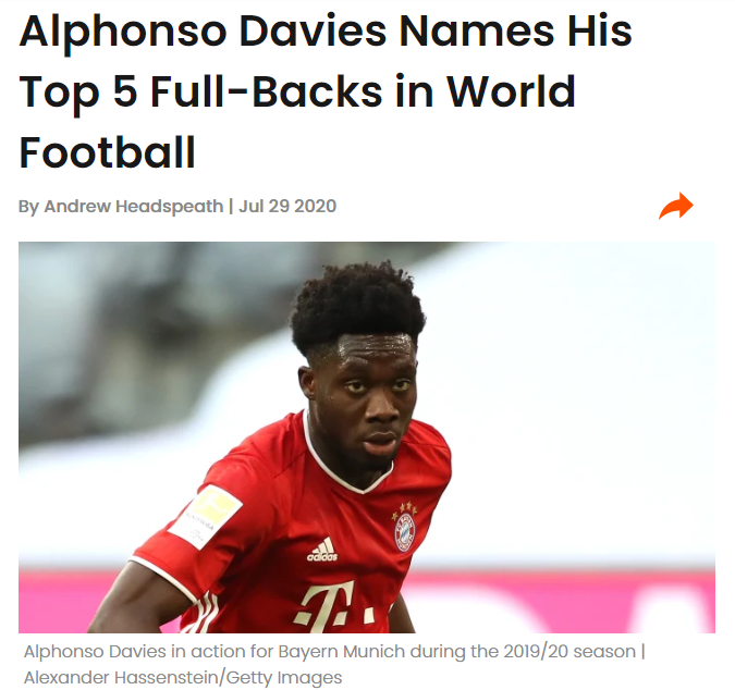 알폰소 데이비스 - "내가 생각하는 세계 5대 풀백"