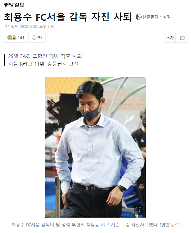 [[중앙일보]최용수 FC서울 감독 자진 사퇴]