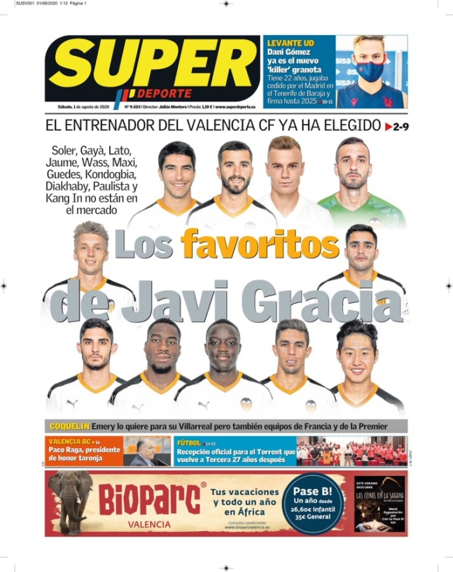 스페인 수페르 포르테 1면. 발렌시아 하비 그라시아 감독의 구상에 포함된 이강인의 모습ㄷㄷ 이강인은 좌우 측면 미드필더로 뛸 가능성이 높음