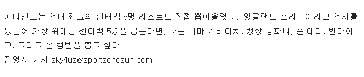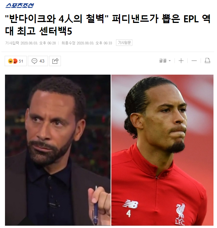 [퍼디난드가 뽑은 '역대 EPL 철벽 수비수 5인']
