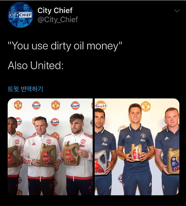 맨시티팬 : "맨유도 더러운 오일머니 쓴다"