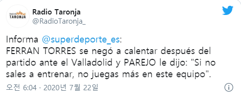 [맨시티 이적 확정 후 발렌시아 주장 파레호를 비난한 페란 토레스]