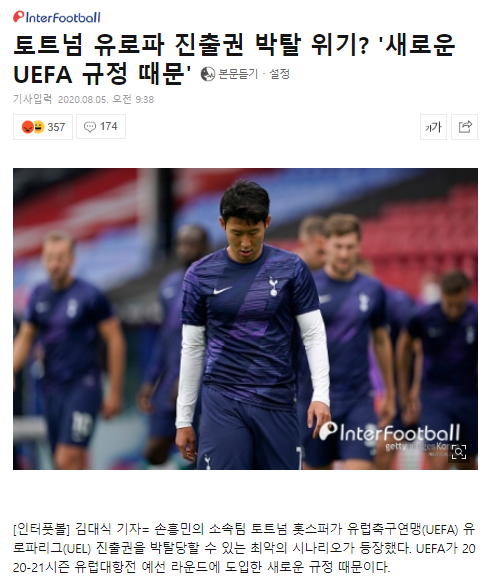 ["코로나19로 인한...", 토트넘 유로파 진출권 박탈 위기??]