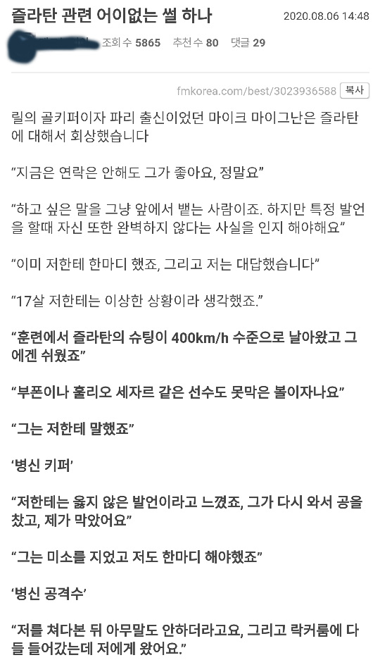 즐라탄한테 'ㅂㅅ 공격수'라고 부른 17살짜리 골키퍼 썰.jpg