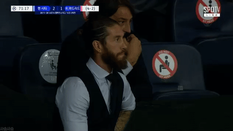 [무너지는 수비를 보고 있는 라모스의 반응.gif]