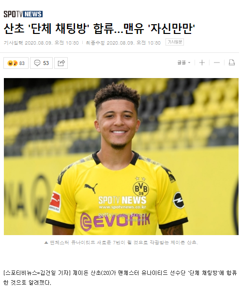 [제이든 산초 맨유 '단체 채팅방' 합류…]