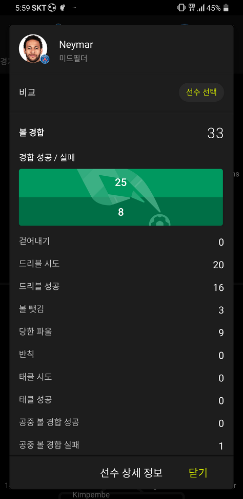 [오늘자 네이마르의 '드리블 횟수와 성공률']