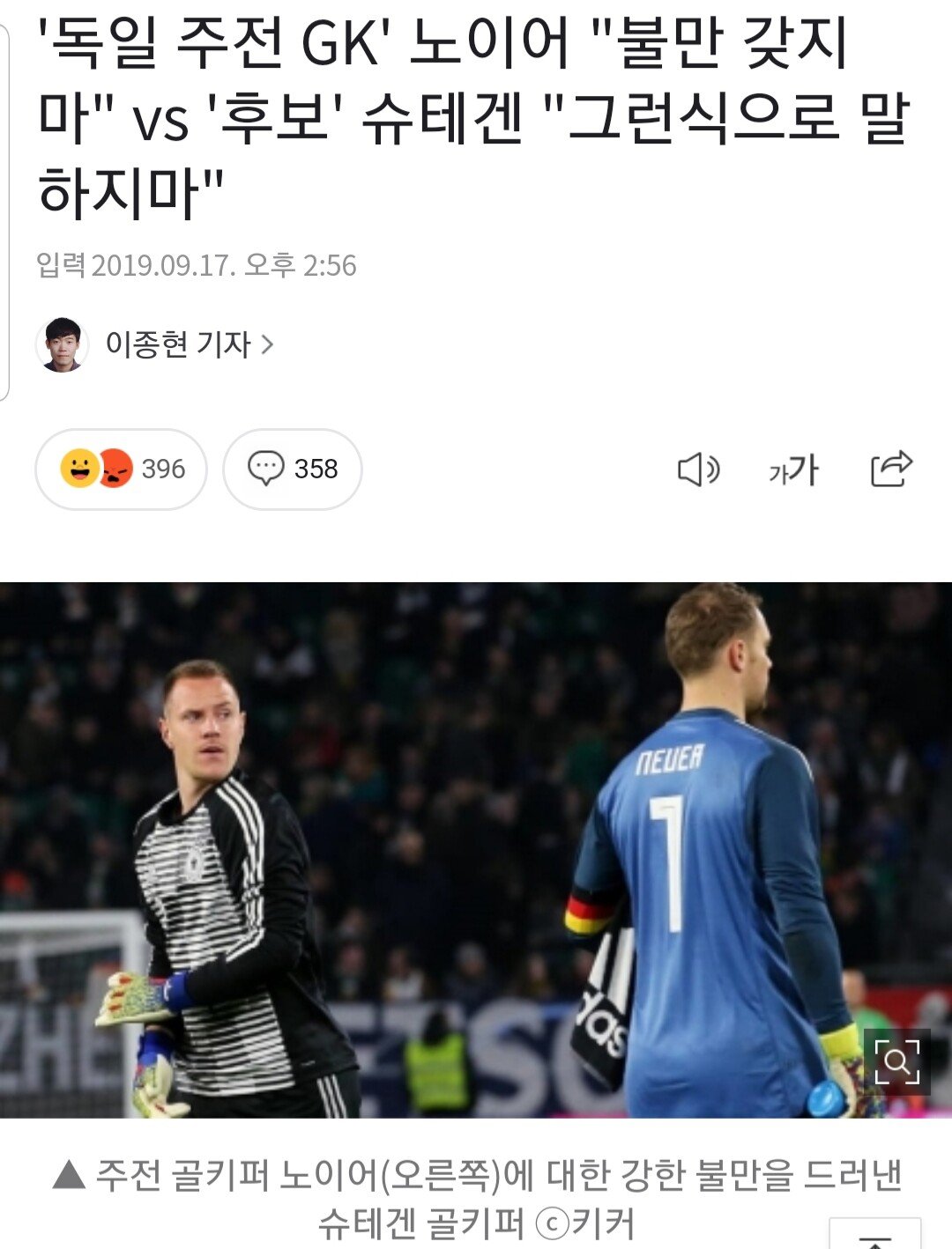 슈테겐의 불만에 대해 노이어는 "슈테겐은 좋은 골키퍼지만, 불만을 표출하는 게 과연 팀에 도움이 될지 모르겠다"고 일갈했다....